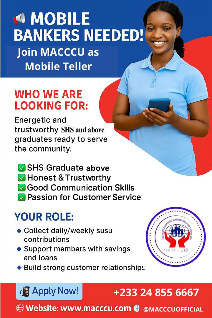 At MACCCU, we believe in financial inclusion and empowering members to achieve their goals. As a Mobile Banker, you’ll play a key role in helping members save securely, access loans, and grow financially. You’ll be the friendly face of MACCCU, bringing banking services closer to people and supporting their financial wellbeing.